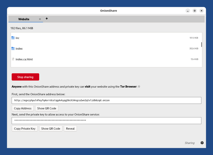 Sharing files, websites, and chat rooms using OnionShare