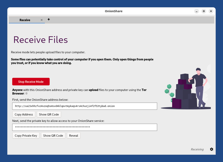 • You specify in OnionShare a folder of your Tails in which you want to receive files.