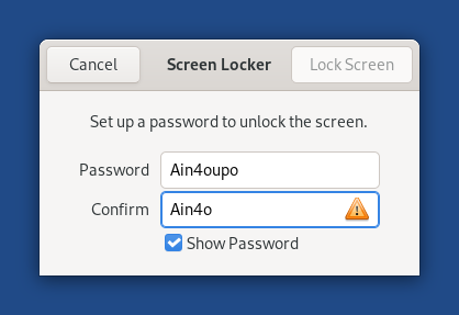 Add a Show Password option when setting the screen locking password.